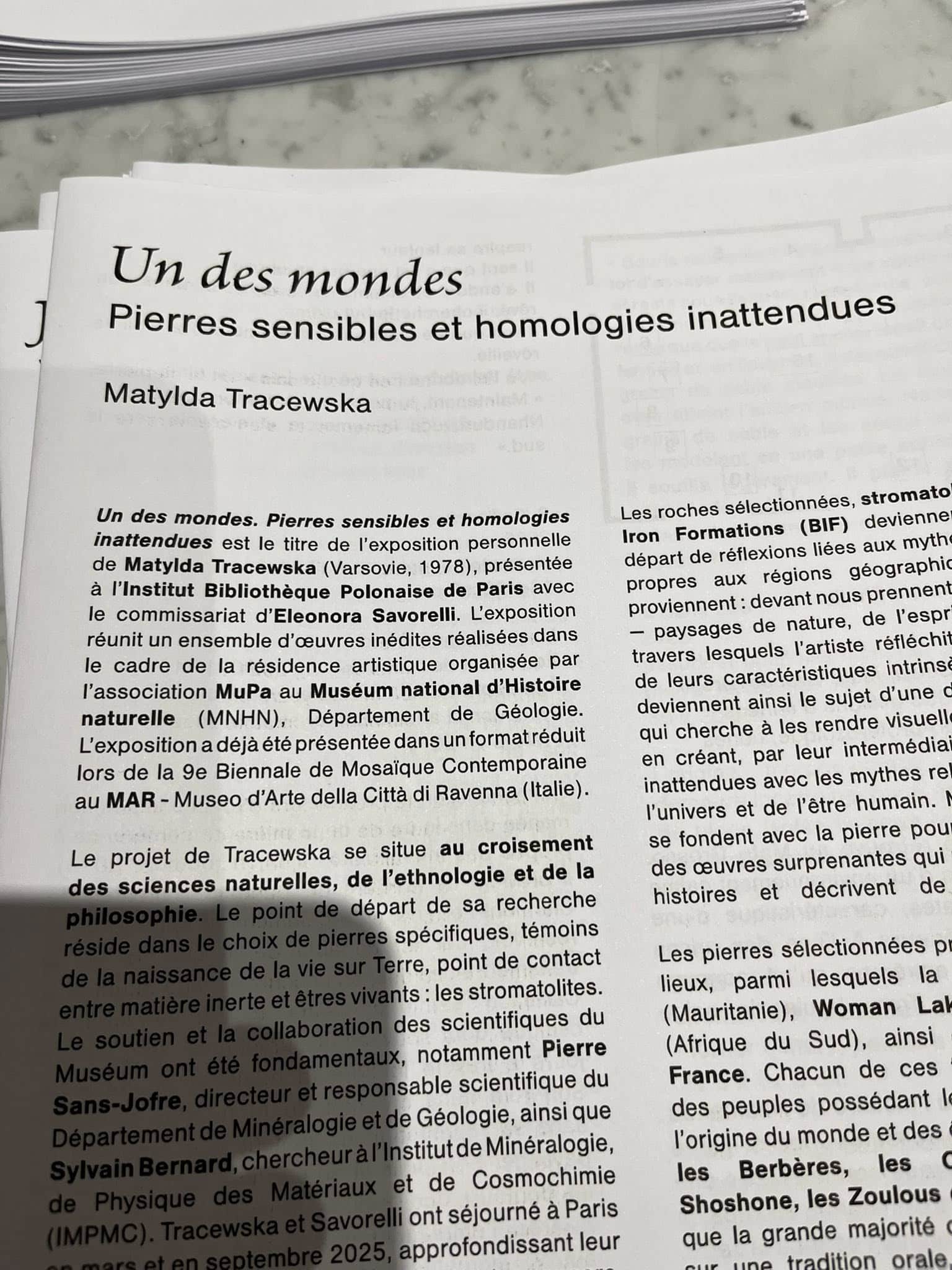 Parmi nos visites, Maxime nous a guidés au musée Bourdelle, où les œuvres de Magdalena Abakanowicz nous ont profondément touchés. Sylvie, présidente de la MUPA, nous a permis de découvrir l’exposition « Un des mondes : pierres sensibles et homologies inattendues » de l’artiste Matylda Tracewska. Lors de cette visite, c’est l’artiste elle-même qui nous a expliqué ses œuvres, racontant sa démarche et sa sensibilité, ce qui a rendu cette expérience vivante et enrichissante.